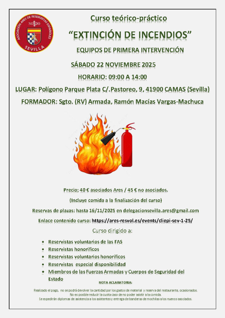 - Reseva de plazas hasta el 8 de septiembre a través del correo delegacionsevilla.ares@gmail.com