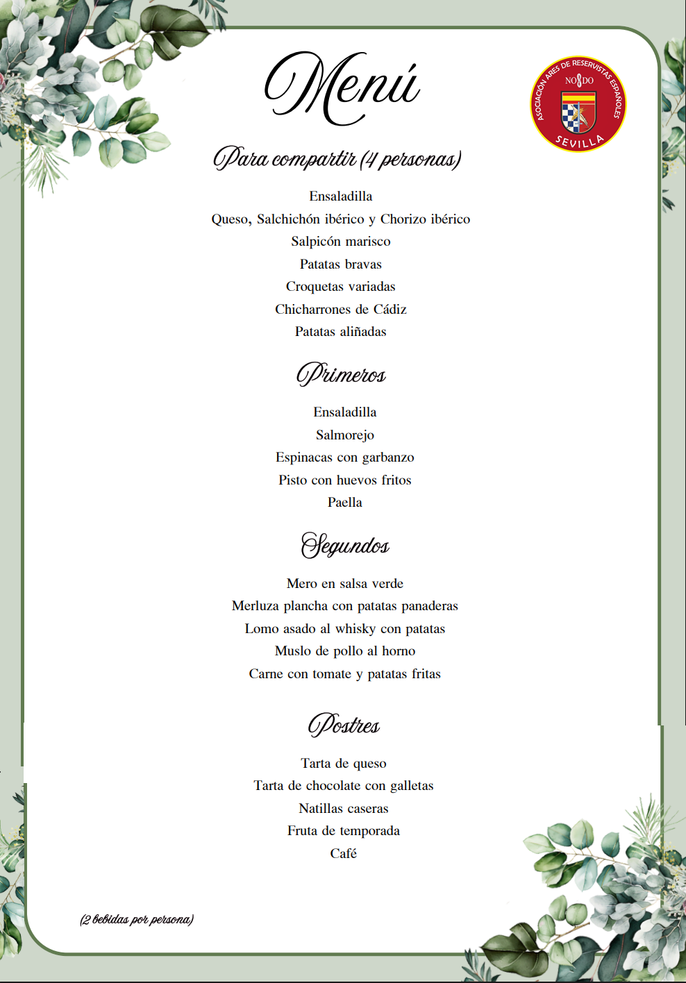 Al finalizar el curso se realizará un almuerzo de confraternización (incluido en el precio del curso), con el siguiente menú: